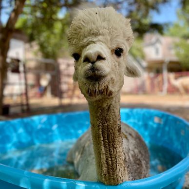 Tahiti is currently our one and only Suri alpaca. She and Ruby are besties and were our first two alpaca so she holds a special place for us. She's elegant and downright majestic when she runs in the pasture. Her mom, Tahitian Black Pearl, was a true black alpaca and her dad, Titan, was dark fawn. Aren't genetics fun?!