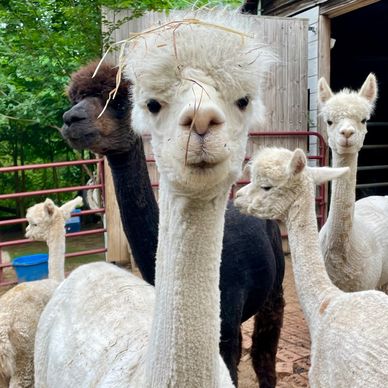 Our flock of girls has grown to 11 sweet little faces. If you visit the farm you'll often find them free-ranging the property in the afternoon. The alpacas get really excited when they see them. You can also buy their very colorful eggs from our farm store.